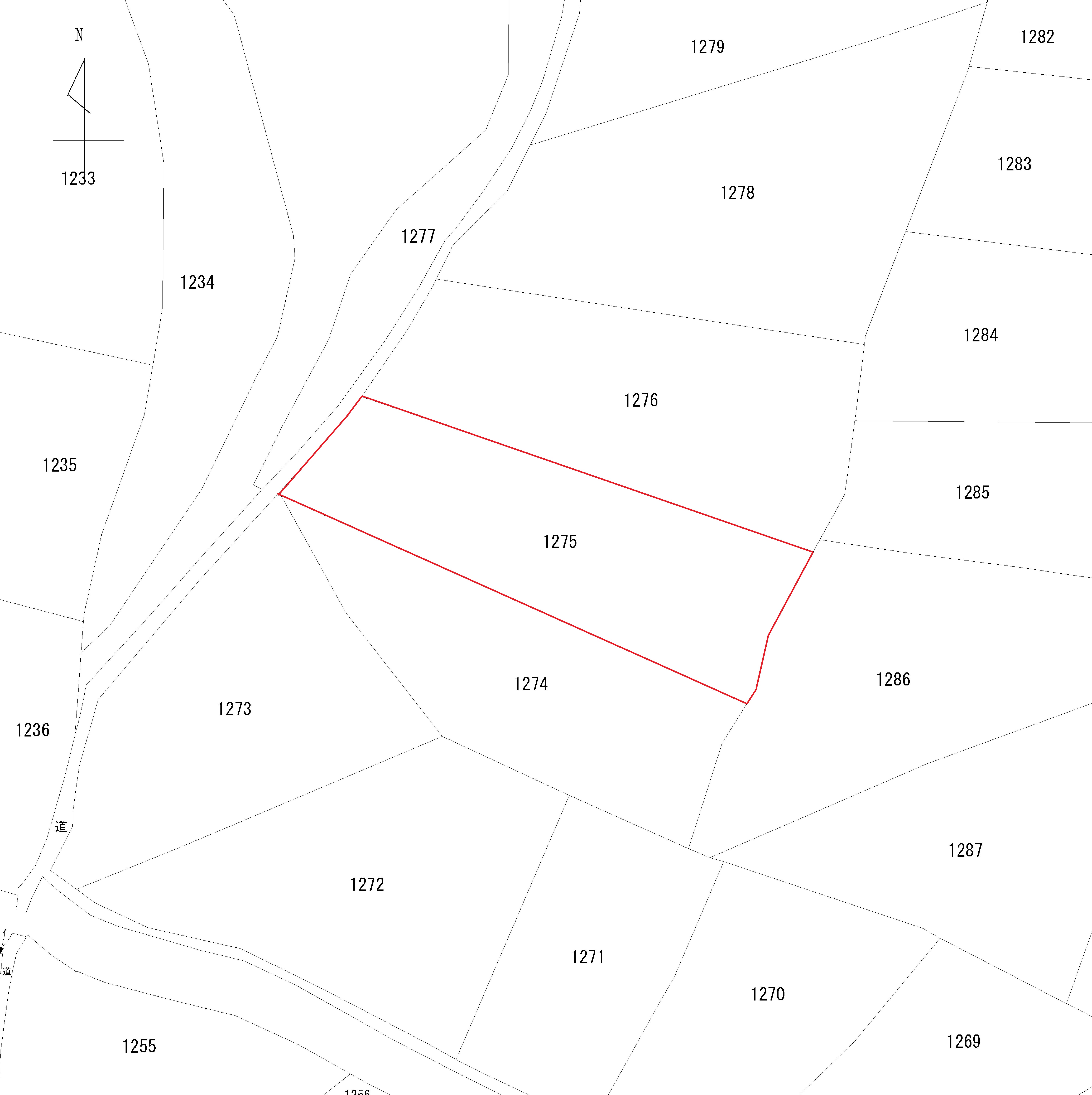 公図上、西側に道の表記がありますが現況が不明な為、現地でご確認下さいませ。